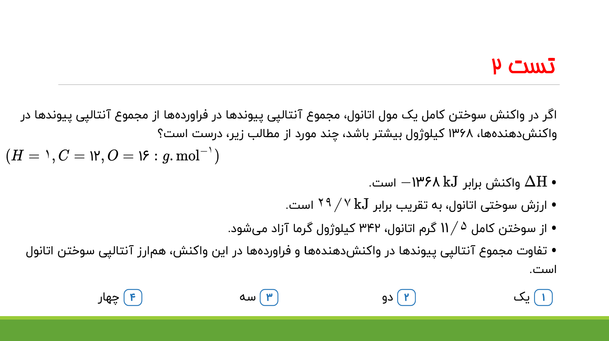 به آزمون شیمی یازدهم فصل دوم خوش‌آمدید